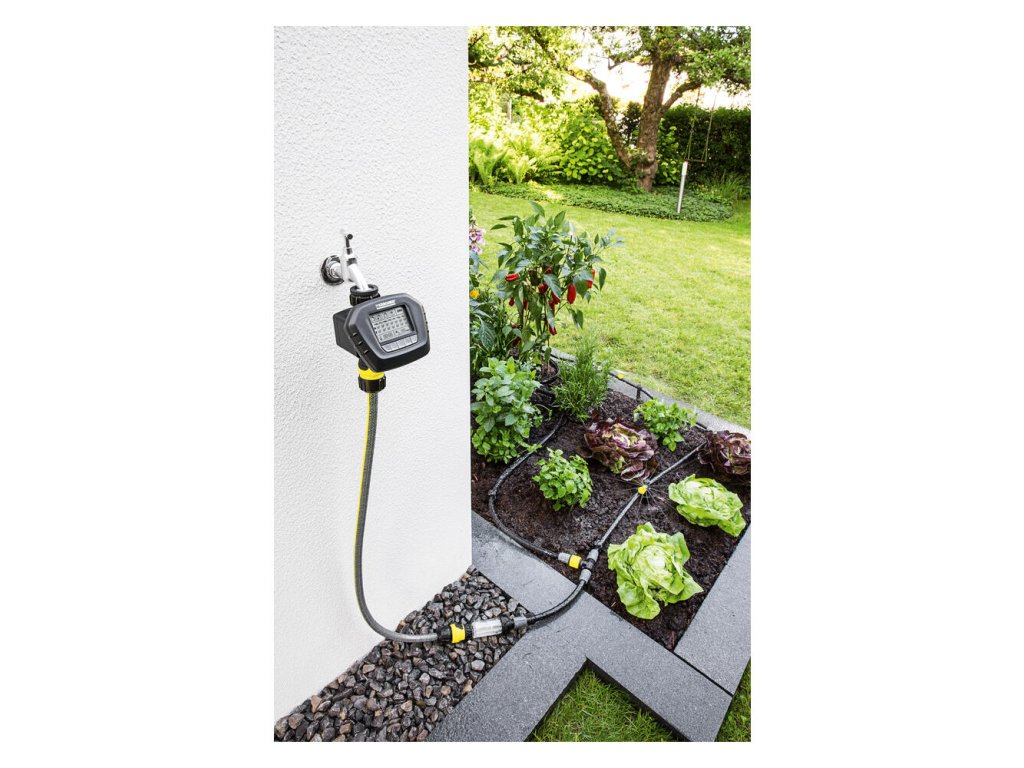 Kärcher Rain Box je ideálnym vstupom do sveta efektívneho a úsporného zavlažovania záhrady podľa potreby. Kärcher Rain Box obsahuje prípojku na kohútik G1 s redukciou G3/4 pre pripojenie na vodovodný kohútik, 2 spojky, 1 filter, 15 m hadicu Kärcher Rain System® (prívodná hadica a na upevnenie manžiet), 10 m kvapkaciu hadicu, 4 T-kusy s reguláciou, 4 I-kusy, 10 kvapkacích manžiet ako aj 5 hrotov na upevnenie hadíc. Všetky diely sa montujú bez použitia náradia. Kvapkacie manžety sa môžu sa upevniť na ľubovoľné miesto na hadici systému Kärcher Rain System® a dajú sa regulovať (0-10 l/h). Kvapkacia hadica zavlažuje rovnomerne po celej dĺžke a dá sa optimálne nastaviť pomocou regulovateľného vývodu na T-kuse. Systém pracuje s tlakom do 4 barov, dá sa individuálne prispôsobiť každej záhrade a perfektne spolupracuje so zariadením SensoTimer pre zavlažovanie podľa potreby.