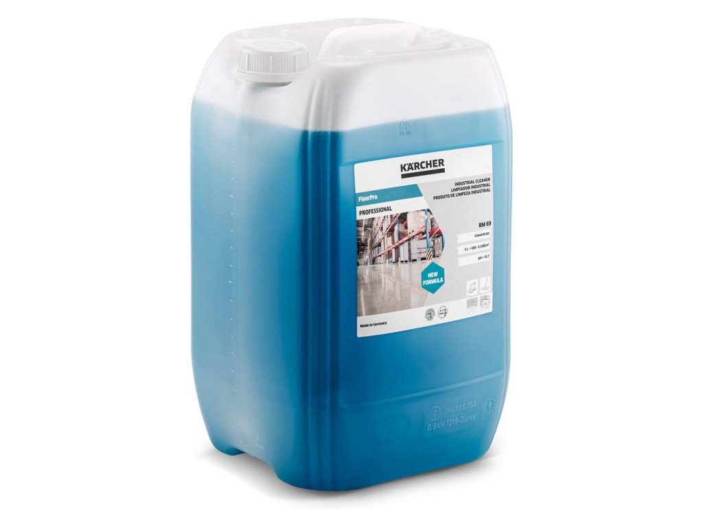 Priemyselný čistiaci prostriedok FloorPro RM 69 na čistenie podláh a priemyselných podláh s nízkou penivosťou. Účinne odstraňuje aj najodolnejšiu mastnotu, olej, sadze a minerálne nečistoty.
