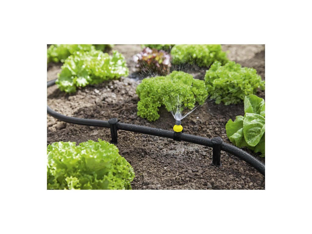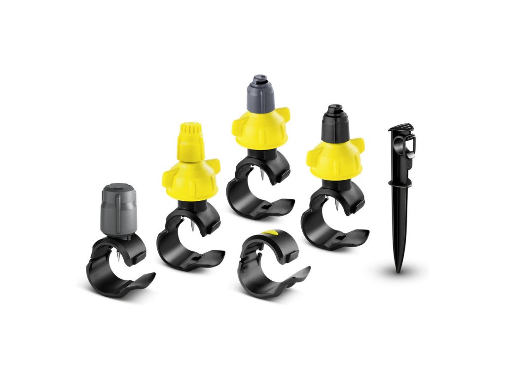 Súprava trysiek je doplnkovou súpravou k zavlažovaciemu systému Kärcher Rain System® a obsahuje 5 kvapkacích manžiet, 10 tesniacich a 10 striekacích manžiet (4x 90°, 4x 180°, 2x 360°) a 5 hrotov. Kvapkacie a striekacie manžety sa môžu sa upevniť na ľubovoľné miesto na hadici systému Kärcher Rain System®. Montáž manžiet sa vykonáva rýchlo, jednoducho a bez náradia. Integrovaná ihla otvorenej manžety sa jednoducho zapichne do hadice. Zatvorením sa manžeta pevne zafixuje na hadici. Prietok kvapkacej manžety sa dá ľubovoľne nastaviť (0-10 l/h). Nasmerovanie uhla striekania sa dá vďaka otočnej hlavy striekacej manžety nastaviť horizontálne alebo vertikálne. Na tryske je možné podľa potreby regulovať prietok od 0 do 55 l/h, čím sa šetrí vodou. Nepotrebné otvory na hadici je možné opäť bezpečne uzavrieť pomocou tesniacej manžety. Kärcher Rain System® pracuje s max. 4 barmi, spája v sebe výhody mikro kvapkania a bežného zavlažovania a dá sa individuálne prispôsobiť každému typu záhrady.