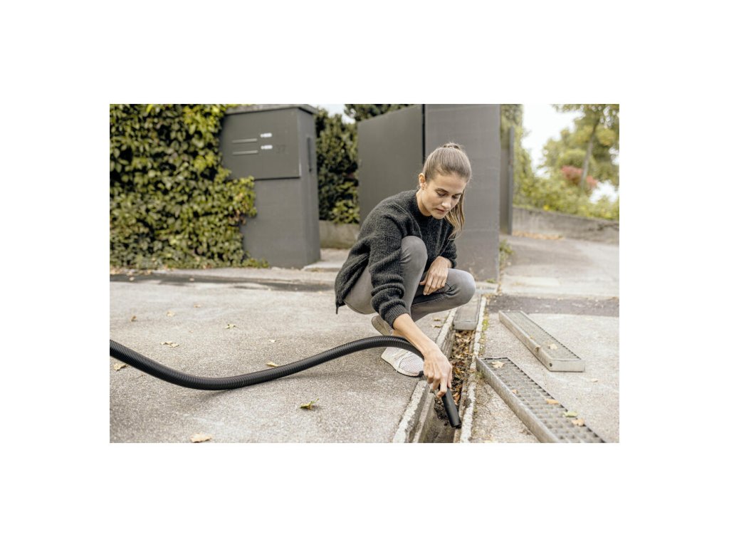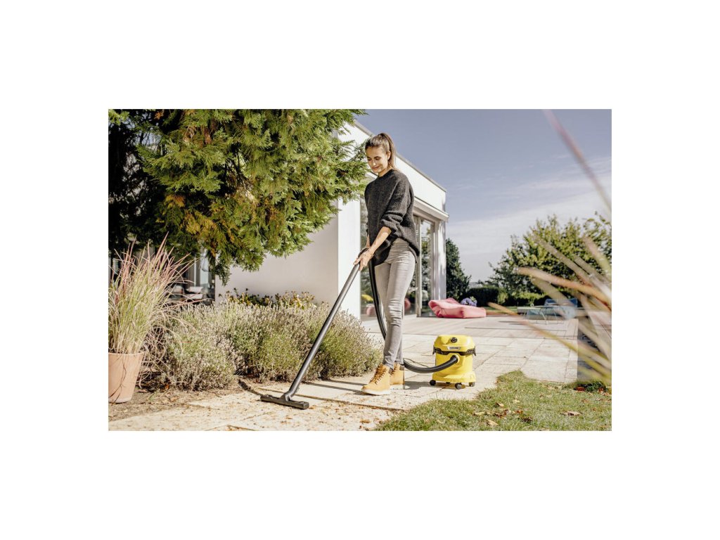 WD 2 Plus V-12/4/18 zaujme svojim kompaktným dizajnom a je super výkonný a energeticky účinný – a so spotrebou iba 1 000 W. Stroj dosahuje najlepšie výsledky čistenia pre suché, mokré, jemné a hrubé nečistoty . Vysávač na mokré a suché vysávanie má robustnú 12 litrovú plastovú nádobu, 4 metrový kábel, ako aj 1,8 metra dlhú saciu hadicu s rovnou rukoväťou, podlahovú hubicu Clips, penový filter a flisové filtračné vrecko. Vysávač disponuje aj praktickou funkciou fúkania, ktorú možno použiť na miestach, kde je vysávanie náročné. Odkladacia plocha na hlave stroja slúži na bezpečné uloženie náradia a malých dielov ako sú skrutky a klince. Rúry a podlahové hubice možno tiež rýchlo a pohodlne zaparkovať v parkovacej polohe na nárazníku. Okrem toho sa stroj môže pochváliť priestorovo úsporným skladovaním, jednoduchým skladovaním príslušenstva, uzamykacím systémom „Pull & Push“ a ergonomicky tvarovanou rukoväťou na pohodlnú prepravu.
