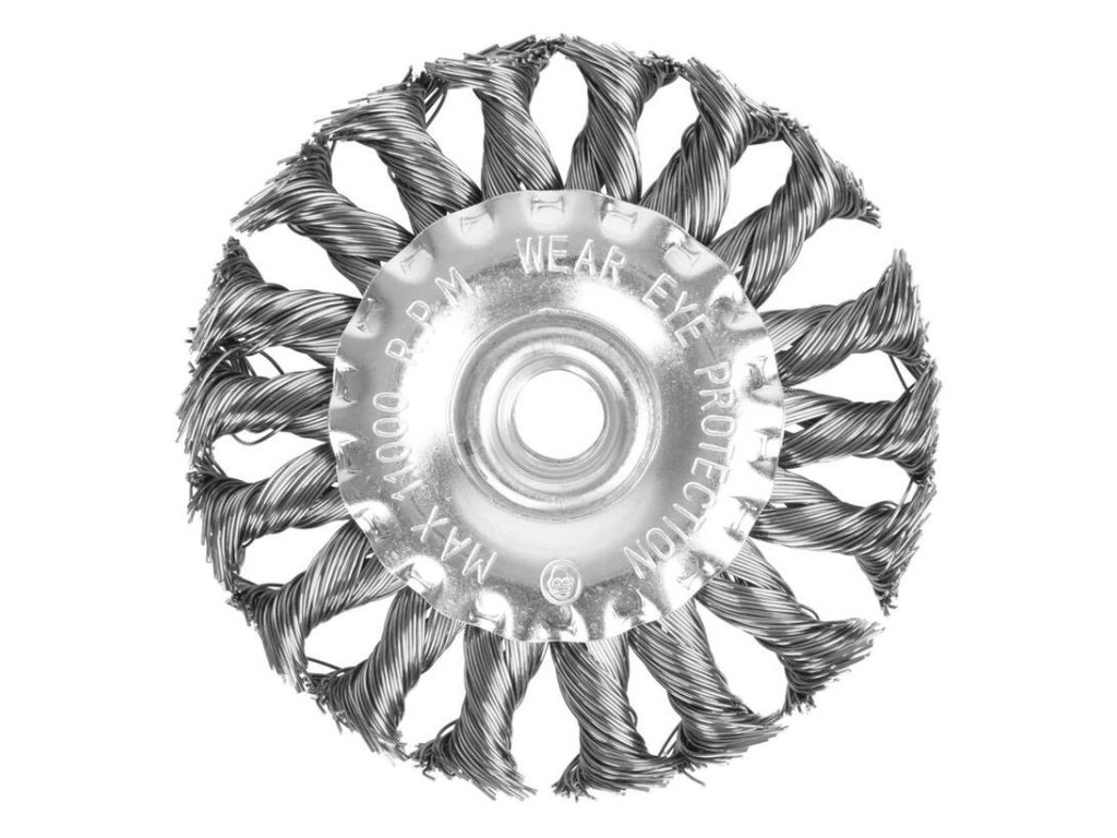 Vrkočová, radiálna kefa Strend Pro by nemala chýbať vo výbave profesionálnych remeselníkov, ale aj domácich kutilov. Priemer kotúča je 100 mm s typom upnutia M14x2mm. Drôt je vyrobený z ocele s hrúbkou 0,5 mm. Typ kotúča je vlnitý. Maximálne povolené otáčky sú 4 500 rpm. Používa sa na odstraňovanie hrdze, korózie, farby a na očistenie povrchov.