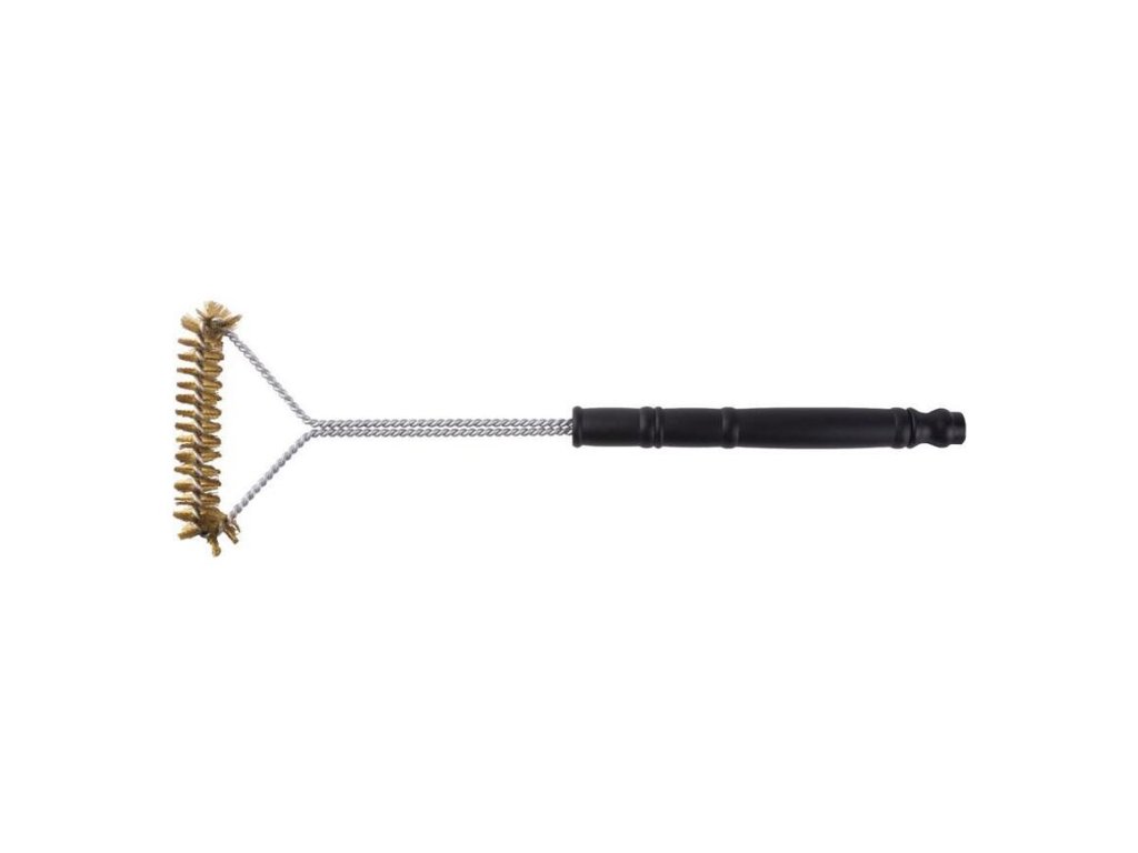Mosadzná kefa na čistenie grilu slúži na odstránenie nečistôt z grilovacieho roštu. Má čiernu plastovú rúčku pre lepšie uchopenie. Na nej je umiestnená valcová kefa. Vďaka štetinám kefy vyrobeným z mosadze sa nemusíte báť prípadného poškodenie alebo poškriabania grilovacieho roštu.