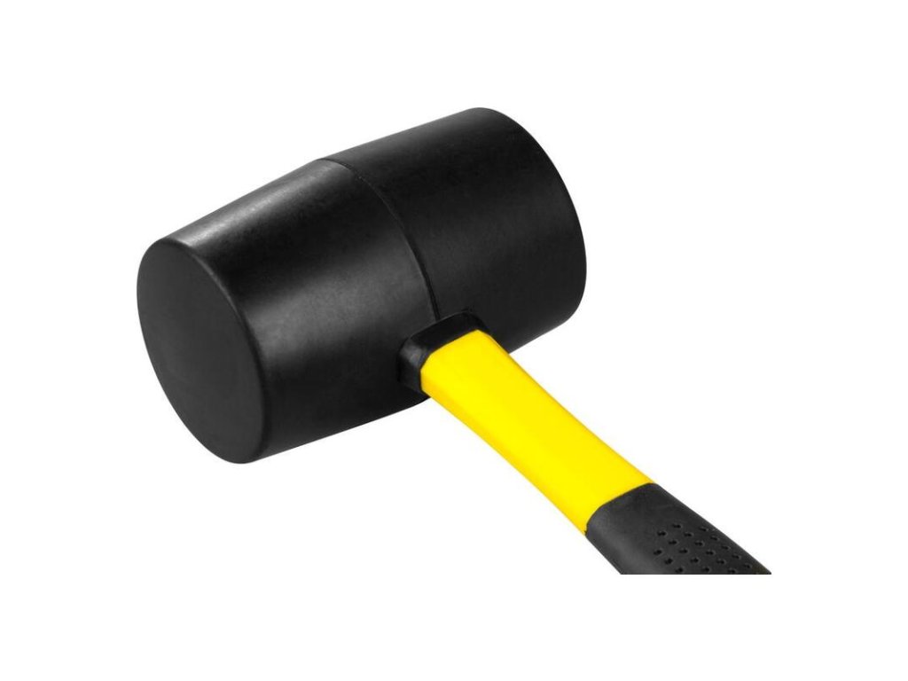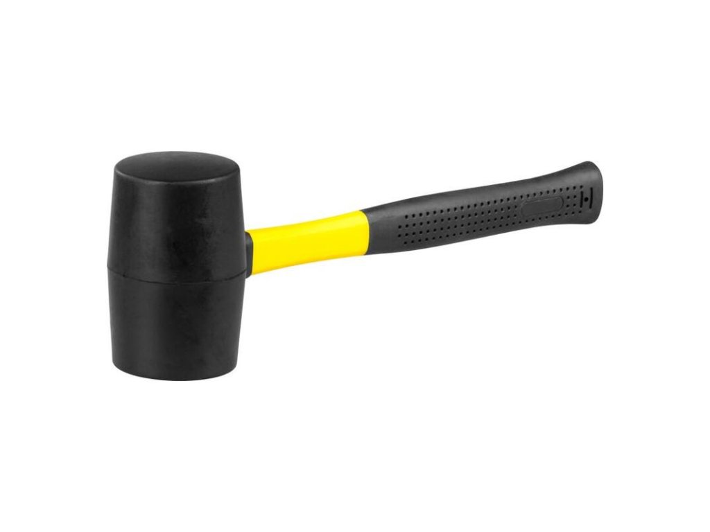Gumené kladivo Strend Pro s priemerom 34 cm a kovovou rúčkou vhodné na univerzálne použitie. Kladivo je ideálne na pribíjanie alebo upravenie citlivých materiálov bez toho, aby sa poškodili..Zatĺkacia hlava čiernej farby je vyrobená z gumy.