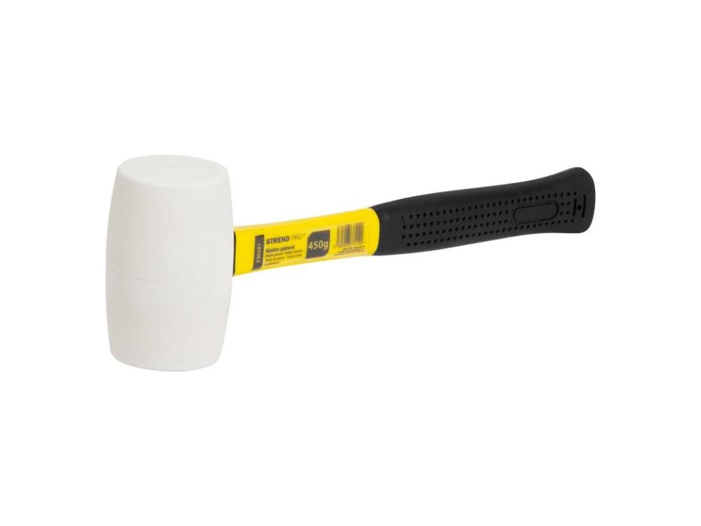 Gumené kladivo Strend Pro s kovovou rúčkou vhodné na univerzálne použitie. Kladivo je ideálne na pribíjanie alebo upravenie citlivých materiálov bez toho, aby sa poškodili..Zatĺkacia hlava bielej farby je vyrobená z gumy.