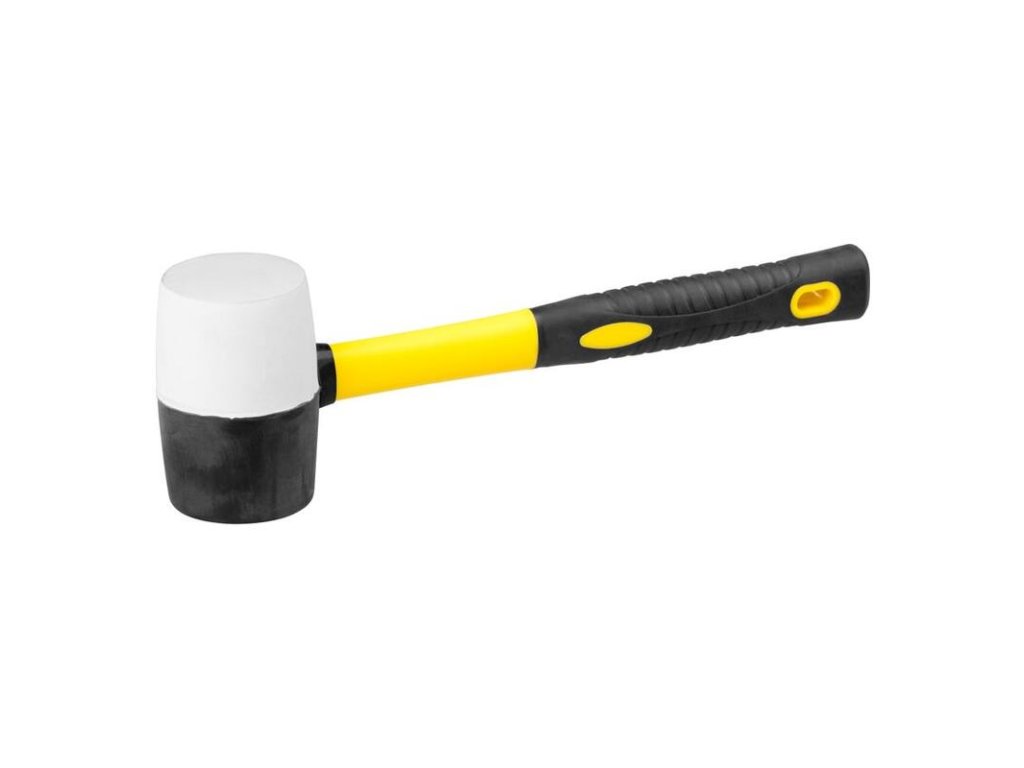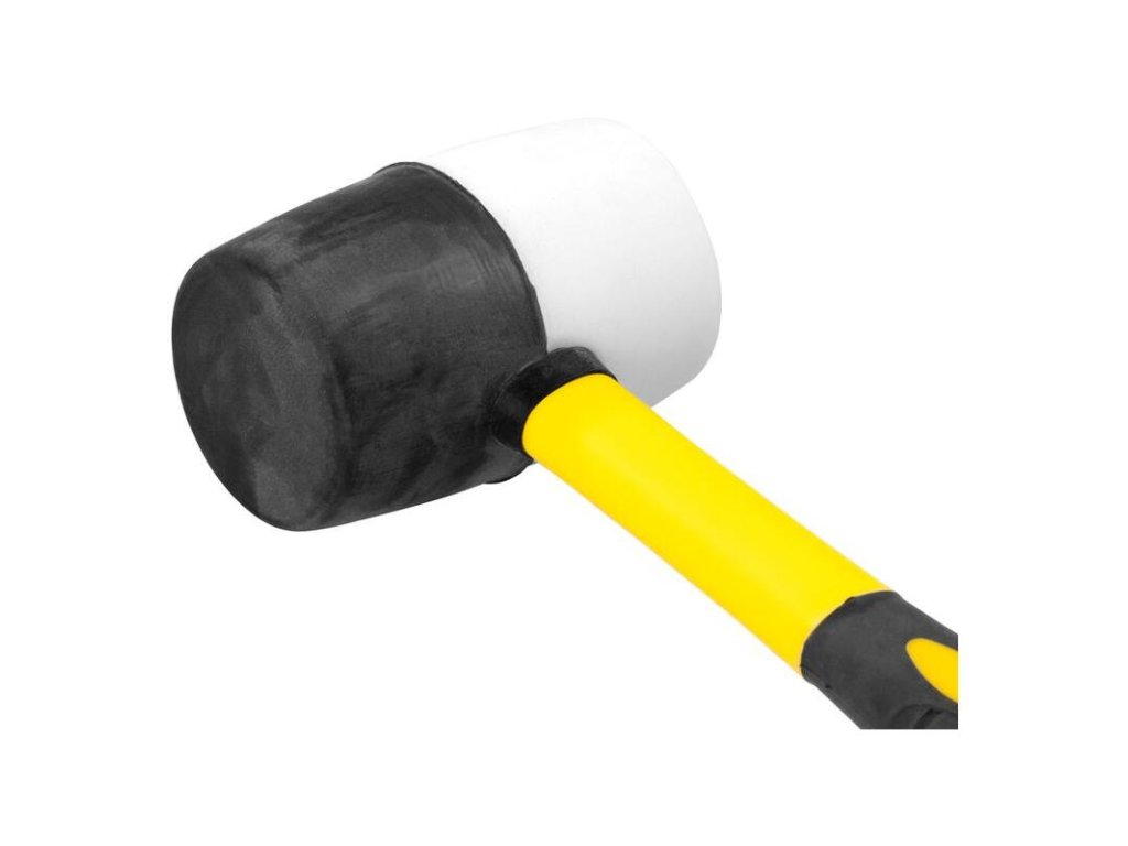 Gumené kladivo Strend Pro so sklolaminátovou rúčkou tlmiacou nárazy vhodné na univerzálne použitie. Kladivo je ideálne na pribíjanie alebo upravenie citlivých materiálov bez toho, aby sa poškodili..Zatĺkacia hlava čierno-bielej farby je vyrobená z gumy.