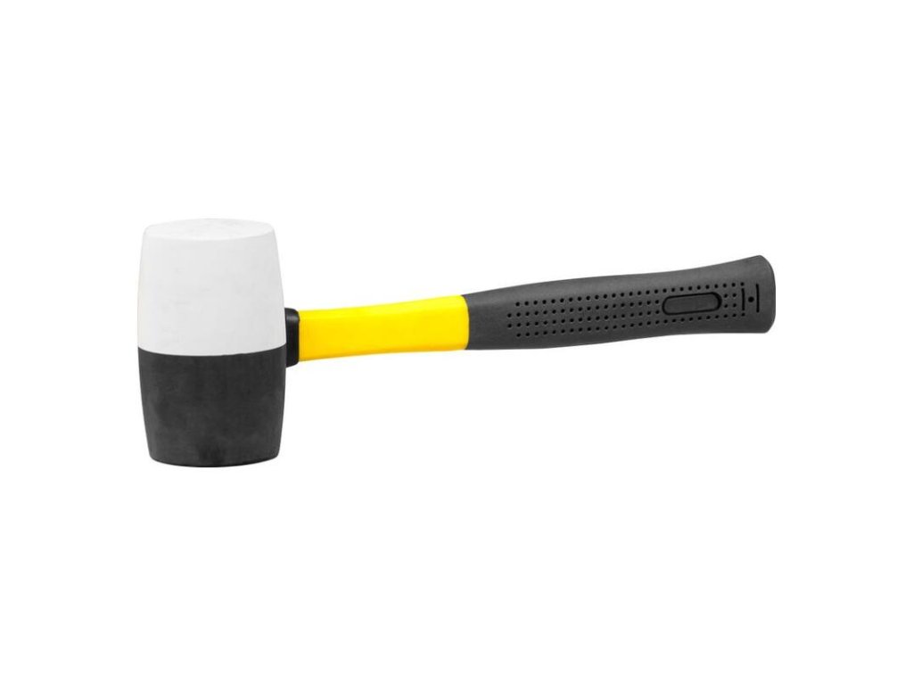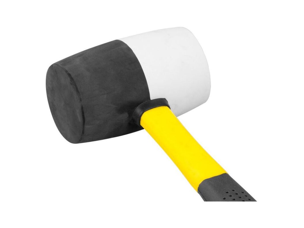Gumené kladivo Strend Pro so sklolaminátovou rúčkou tlmiacou nárazy vhodné na univerzálne použitie. Kladivo je ideálne na pribíjanie alebo upravenie citlivých materiálov bez toho, aby sa poškodili..Zatĺkacia hlava čierno-bielej farby je vyrobená z gumy.