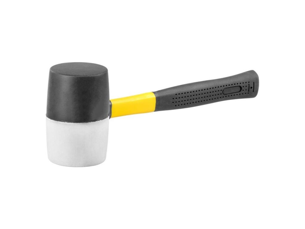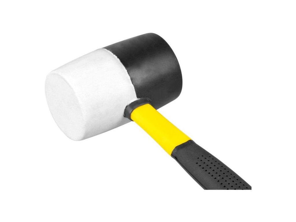 Gumené kladivo Strend Pro so sklolaminátovou rúčkou tlmiacou nárazy vhodné na univerzálne použitie. Kladivo je ideálne na pribíjanie alebo upravenie citlivých materiálov bez toho, aby sa poškodili..Zatĺkacia hlava čierno-bielej farby je vyrobená z gumy.