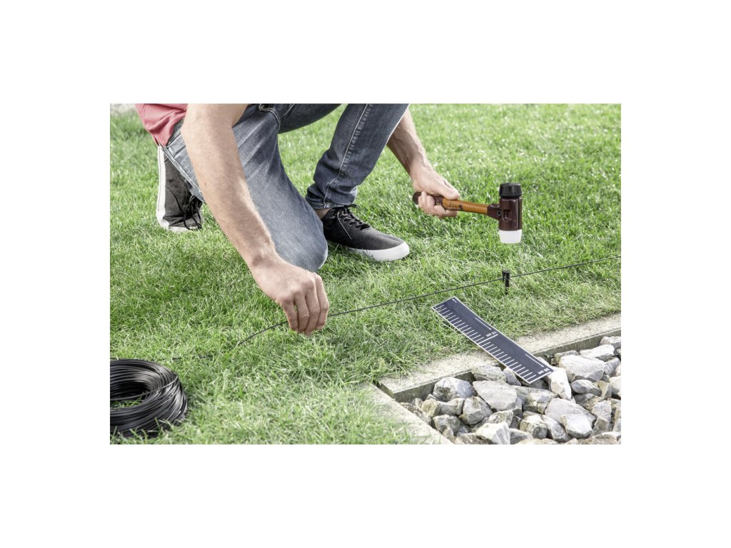 Pomocou klincov do trávnika je možné obvodový drôt robotickej kosačky bezpečne upevniť v trávniku. Vodiace háky zaručujú spoľahlivé uchytenie – aj pri spätnom vedení drôtu ako aj natiahnutí rezervného drôtu. Už po niekoľkých týždňoch klince v tráve zarastú a nie je ich vidieť.
