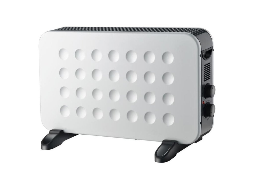 So zapnutým ventilátorom dokáže rýchlejšie a rovnomernejšie šíriť teplo. Jeho vysoký výkon zaisťuje dostatočnú výhrevnosť. Tepelný výkon dosahuje 1250 W/2000 W. Konvektor je vybavený praktickou rukoväťou, tepelnou poistkou, regulátorom tepelného výkonu a regulátorom termostatu. Dĺžka napájacieho kábla dosahuje 1,7 m.