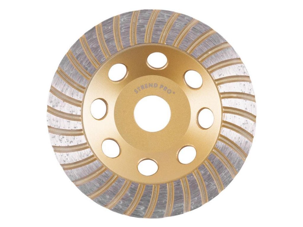 Diamantový kotúč Strend Pro je vhodný pre domácich kutilov, ale aj pre profesionálnych remeselníkov. Vhodný je na mokré aj suché brúsenie. Používa sa na zaoblenie hrán a vyhladenie povrchov. Konštrukcia lemu zachytáva vzduch v pohybe, čím lepšie odvádza materiál, čo zaručuje čistejšie brúsenie bez odlamovania materiálu, rýchlejšie rezy, optimálnu životnosť a redukciu zahrievania. Chladiace otvory pomáhajú zvýšiť viditeľnosť pri rezaní odvádzaním materiálu a zaisťujú rozptyl tepla. Má široké využitie - betón, kameň, murivo, tehly, dlažba, obklad, mramor, žula a strešná krytina. Jeho priemer je 125 mm a maximálne povolené otáčky sú 12 200 rpm.