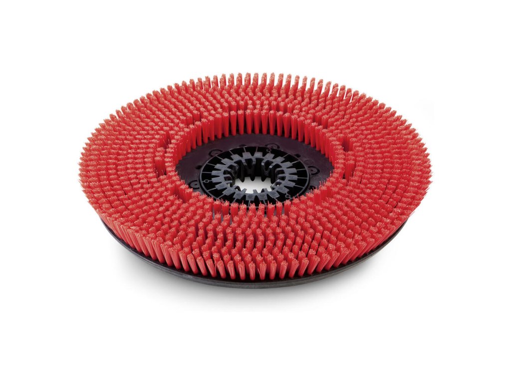 Kotúčová kefa stredná v červenom prevedení s priemerom 430 mm. Štetiny z Polypropylénu: hrúbka 0,6 mm, dĺžka 41 mm. Hodí sa na každý bežný druh čistenia, aj na citlivé podlahy.