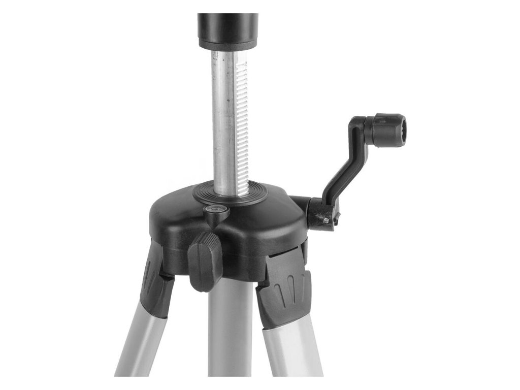 Súčasťou balenia je aj hliníkový statív s univerzálnym závitom 5/8", ktorý zaisťuje pevné a stabilné uchytenie laseru. Nastaviteľná výška až do 85 cm a ručné jemné nastavenie výšky umožňujú prispôsobenie laseru do optimálnej pracovnej polohy pre každú úlohu.