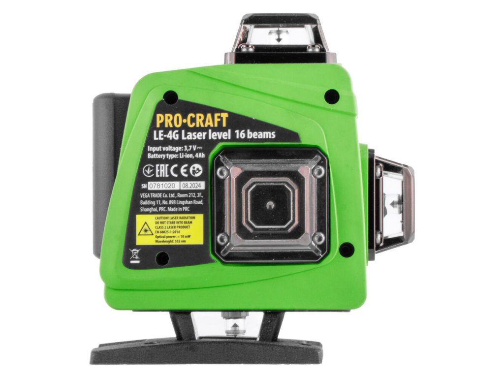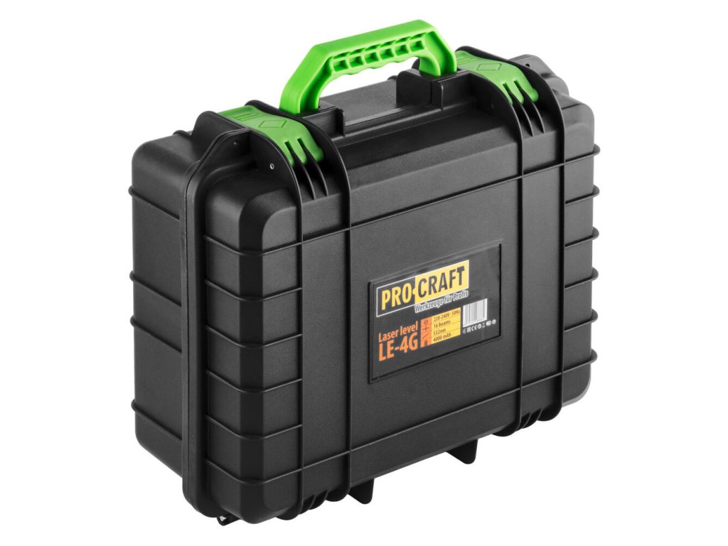 Krížový, samonivelačný laser ProCraft LE-4G je vytvorený pre odborníkov a domácich majstrov, ktorí hľadajú presnosť a efektivitu pri svojich projektoch. Tento laserový systém kombinuje zelený krížový laser s hliníkovým statívom, čo poskytuje maximálnu presnosť a stabilitu. S projekciou 360° horizontálne aj vertikálne a automatickou samoniveláciou do ±3°, si poradí s každou výzvou vo veľkých aj malých priestoroch.