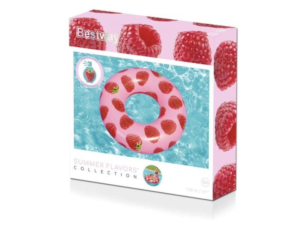 Nafukovací kruh Bestway® 36231 Scentsational Raspberry s motívom malín je zhotovený z odolného PVC materiálu s vôňou malín. Kruh je vhodný pre deti od 12 rokov. Spríjemní vám horúce letné dni strávené v bazéne.