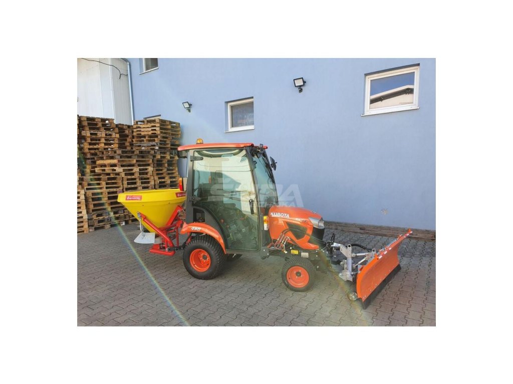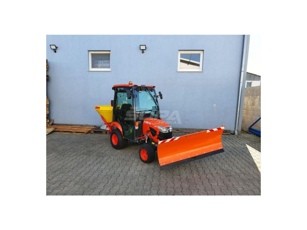 Traktor Kubota BX261-zimný set, ktorý obsahuje traktor, kabínu, kúrenie, predné hydraulické ramená, joistik na ovládanie zdvihu a natáčania radlice, prednú radlicu na sneh o zábere 1200 až 1600 m podľa vlastného výberu a rozmetadlo na komunálny posyp
