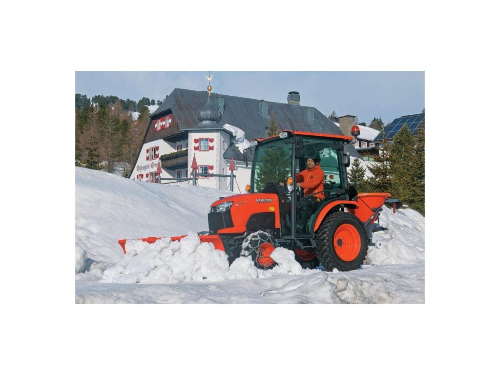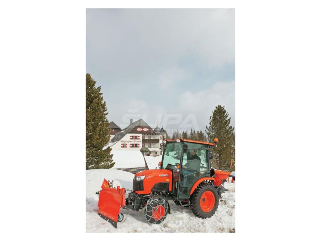 Traktor Kubota B2261-zimný set, ktorý obsahuje traktor, kabínu, kúrenie, klimatizáciu, predné hydraulické ramená, joistik na ovládanie zdvihu a natáčania radlice, prednú radlicu na sneh o zábere 1600 až 2000 m podľa vlastného výberu a