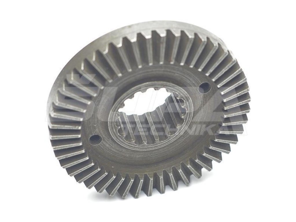 Hlavná časť uhlového prevodu, ktorá mení smer otáčania z vertikálneho (od motora) na horizontálny (pre adaptér). V prevodovke DSK-316 je toto koleso vystavené veľkej záťaži pri kosení. Ak počujete z prevodovky "chrumkanie" alebo adaptér prešmykuje, skontrolujte stav zubov tohto kolesa.Hlavné vlastnosti: