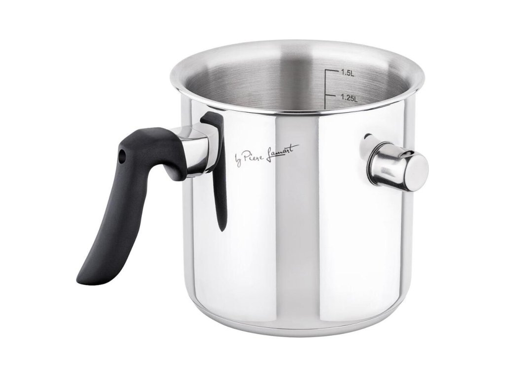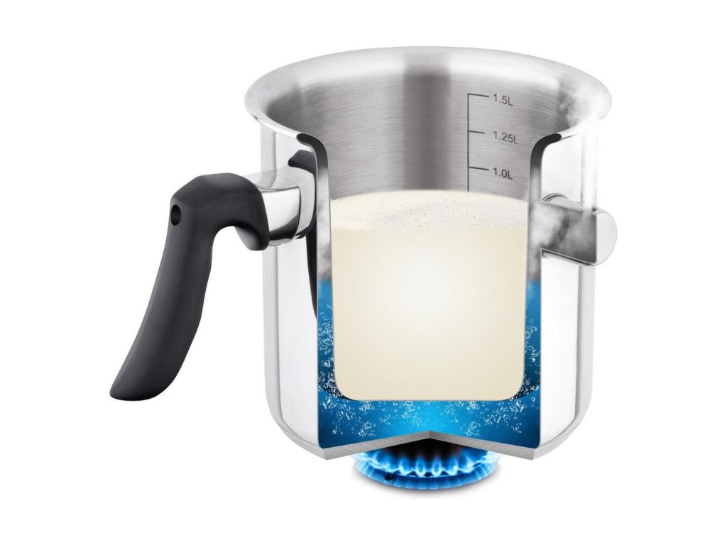 Hrniec na mlieko je vyrobený z kvalitnej dvojplášťovej oceles termo-akumulačnými vlastnosťami pre rýchly rozvod tepla
