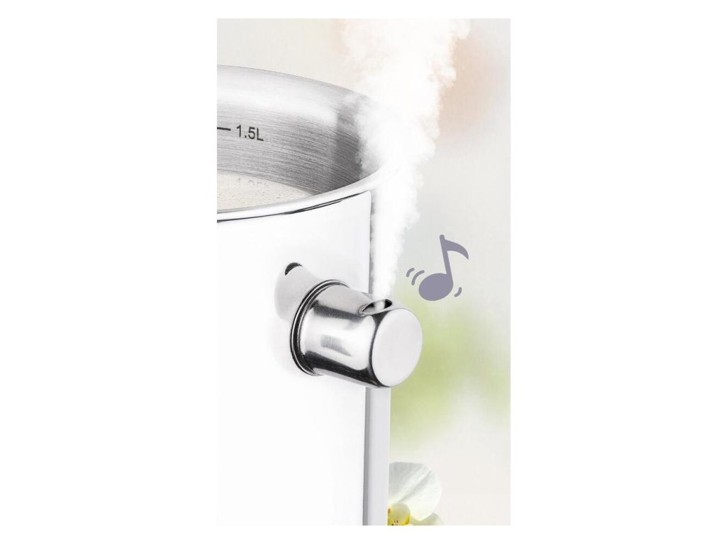a úsporu energie. Hrniec má sendvičové dno, soft rukoväť, signalizačnú píšťalku a stupnicu litráže.