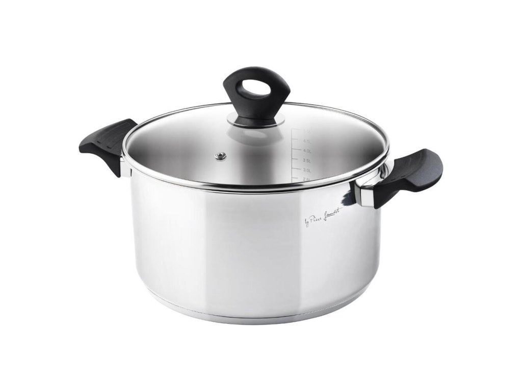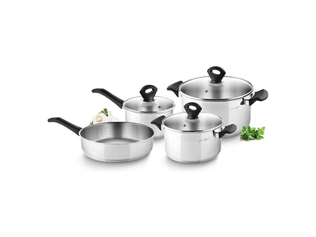 Dizajnový nerezový riad vyrobený z prvotriednej nehrdzavejúcej ocele, vybavené silným sendvičovým dnom a veľmi elegantnými rukoväťami pre väčšiu bezpečnosť, funkčnosť a pohodlie