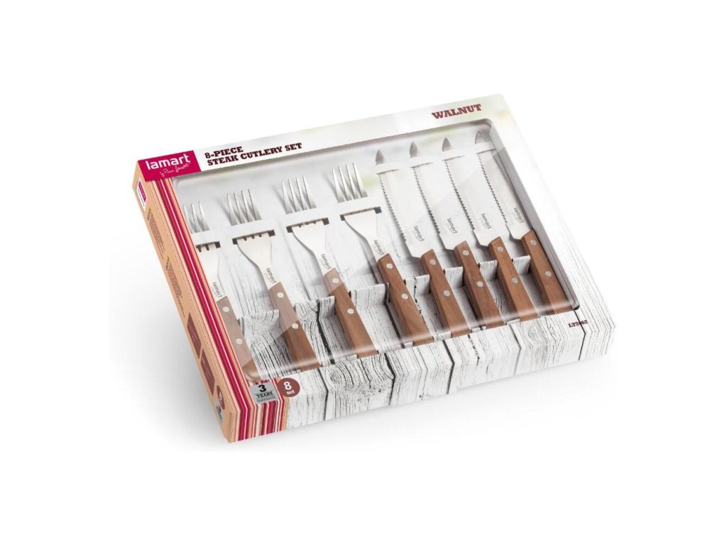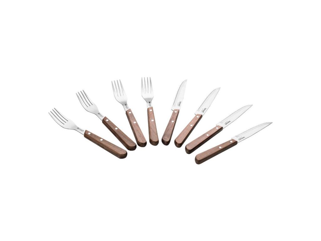 Sada steakových príborovVyrobené z kvalitnej ocele s ergonomickou rúčkou z orechového dreva