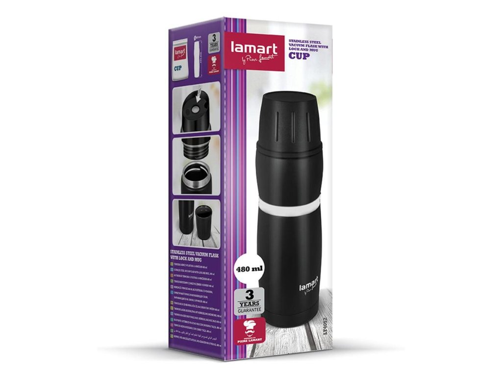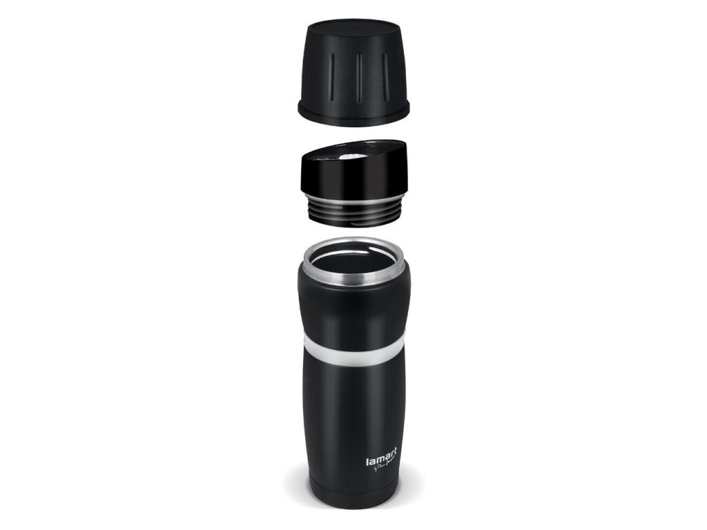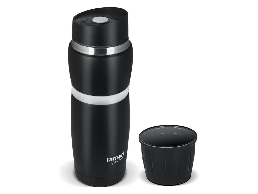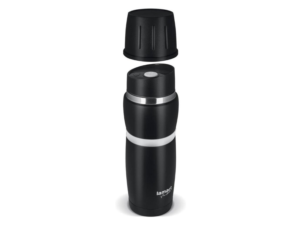 Termoska je vyrobená z vysoko kvalitnej nehrdzavejúcej ocele. K dispozícií je tlačidlový mechanizmus otvorenia termosky vyrobený z kvalitného plastu. Nerezová vložka robí termosku takmer nerozbitnou. Poistkový mechanizmus zabráni nečakanému otvoreniu.
