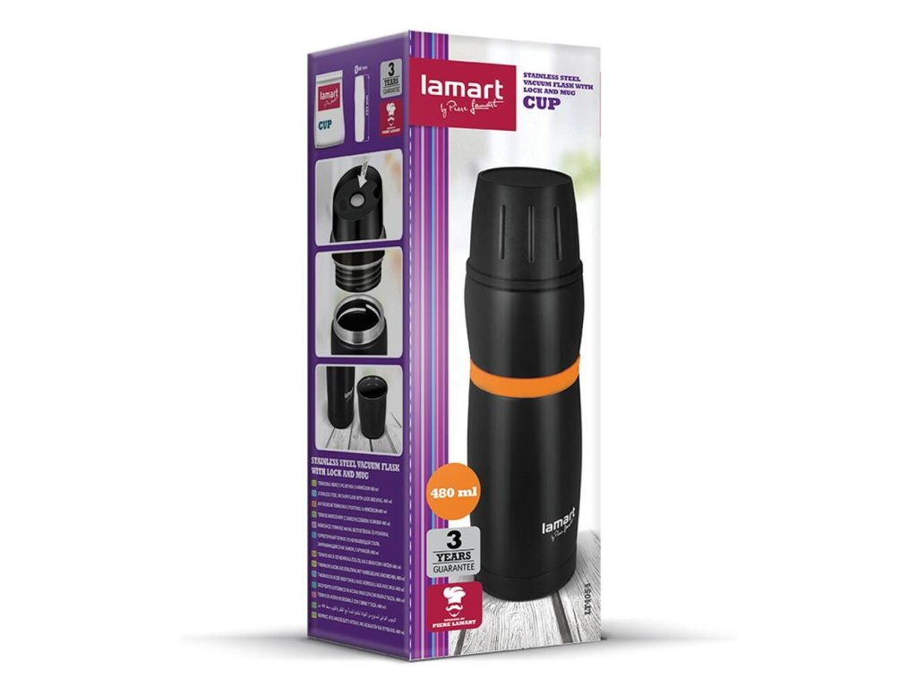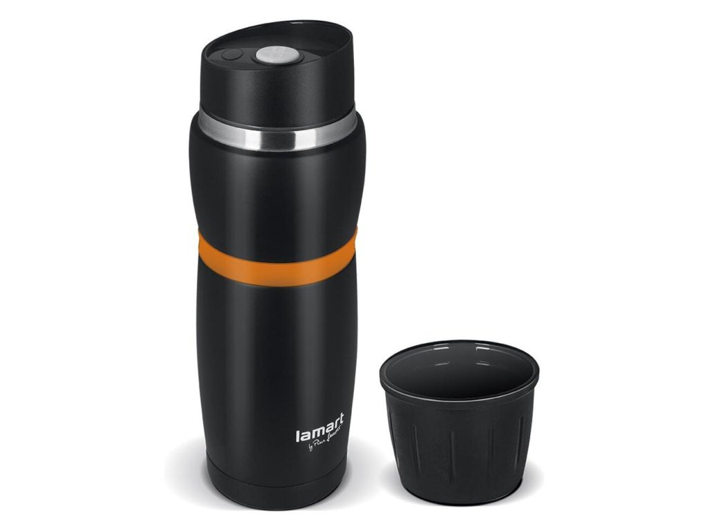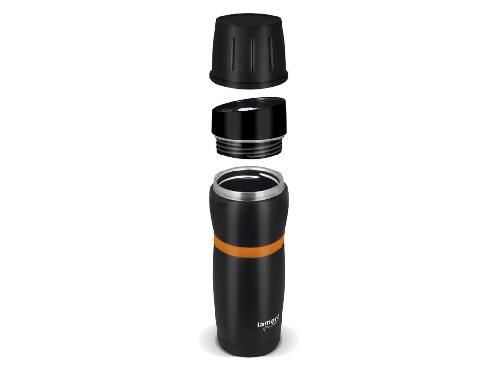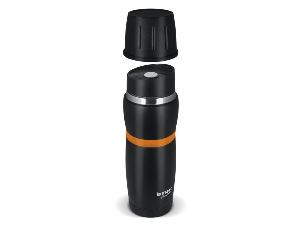 Termoska je vyrobená z vysoko kvalitnej nehrdzavejúcej ocele. K dispozícií je tlačidlový mechanizmus otvorenia termosky vyrobený z kvalitného plastu. Nerezová vložka robí termosku takmer nerozbitnou. Poistkový mechanizmus zabráni nečakanému otvoreniu.