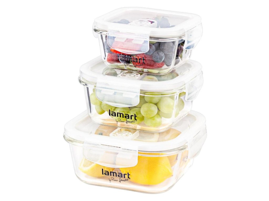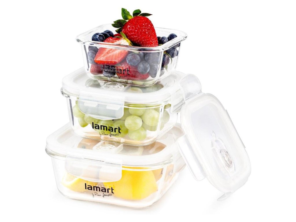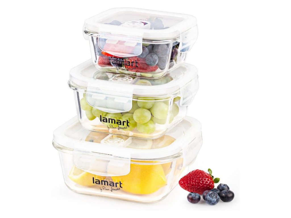 Sada dóz pre skladovanie a prenášanie potravínVyrobená z odolného skla a plastu s kvalitným silikónovým tesnením viečka - vzduchotesné a vodotesné