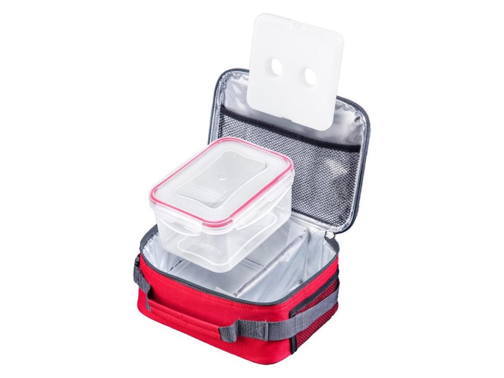 Rozmery: termotaška - 23x18x10 cm, dóza - 18,5x13x8,5 cm, chladiaca vložka - 12x12x1,2 cm