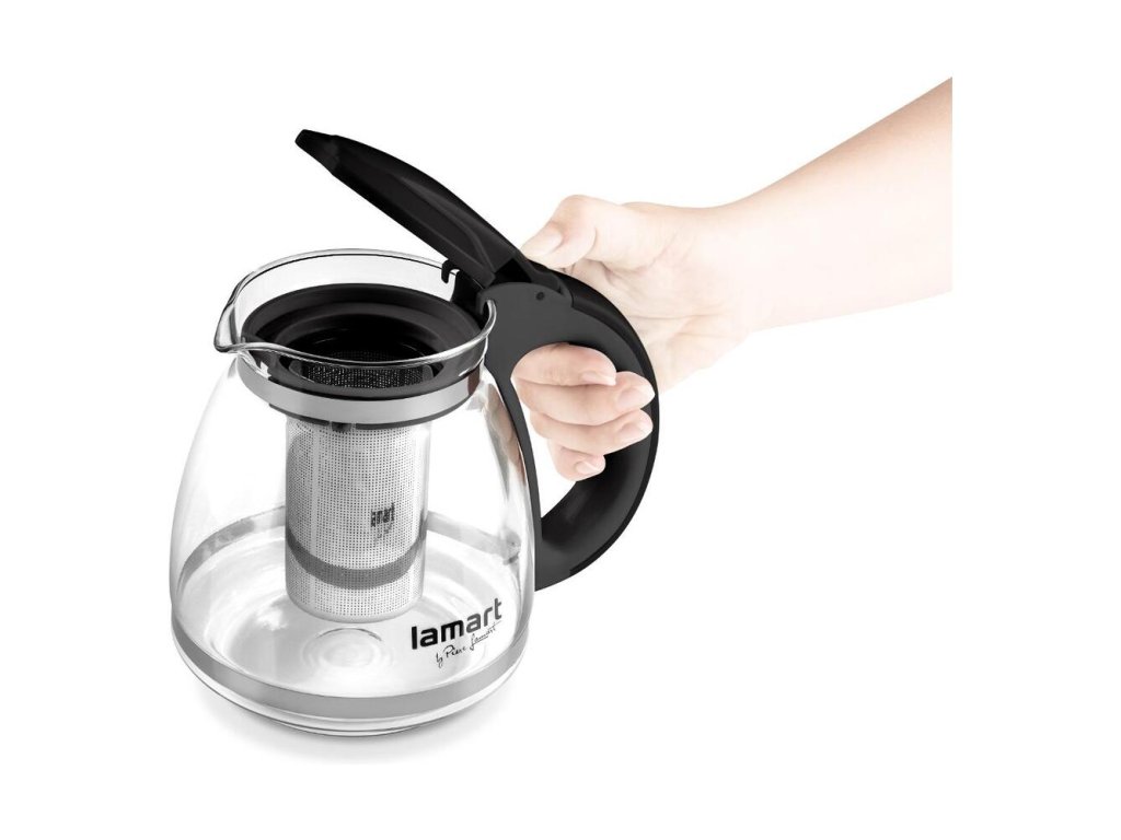 Kanvica obsahuje nerezové sitko pre sypké čaje, kúsky ovocia nebo čajové bylinky