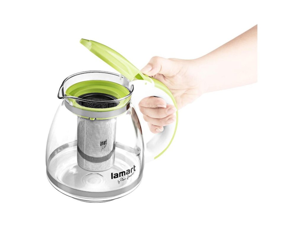 Kanvica obsahuje nerezové sitko pre sypké čaje, kúsky ovocia nebo čajové bylinky