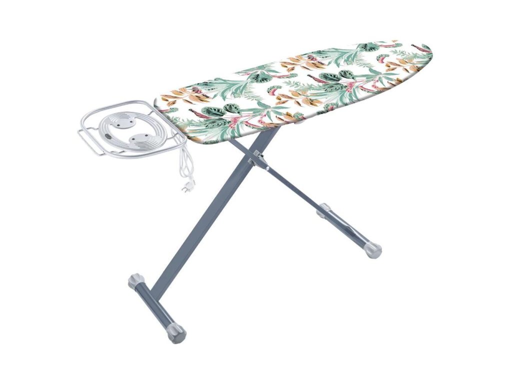 Doska na žehlenie s elektrickou zásuvkou v rozmeroch 125 x 45 cm a výškou až 90 cm.