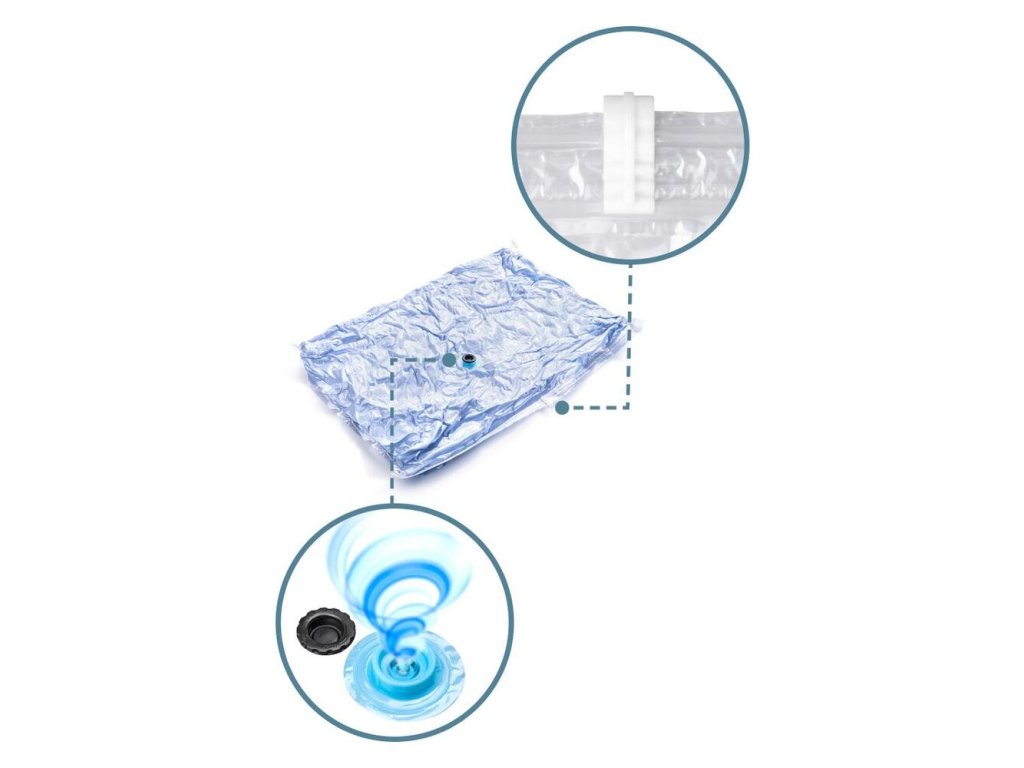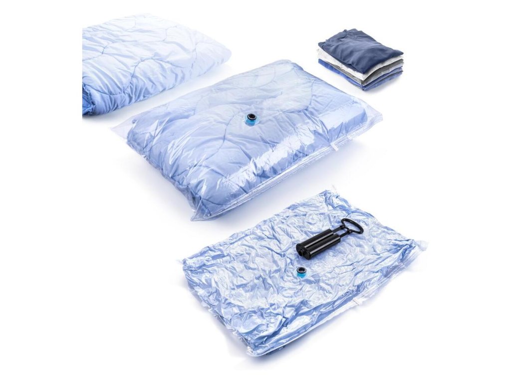 Sada obsahuje ručnú pumpu a dva ochranné vaky. Ochranné vaky poskytujú ideálnu ochranu odevov alebo textílie proti prachu, moliam, vlhkosti a zápachu.