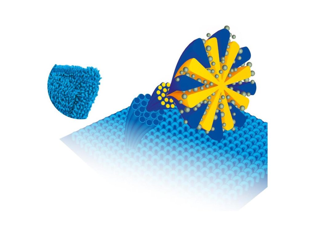 Umývateľná časť z mikrovlákna pre dôkladné umytie doplnená o gumovú stierku pre dokonalé utretie.