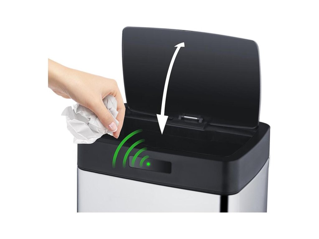 Senzorické otváranie koša s využitím snímača pohybu je úplne automatické a tiež veľmi hygienické (bezdotyková prevádzka)