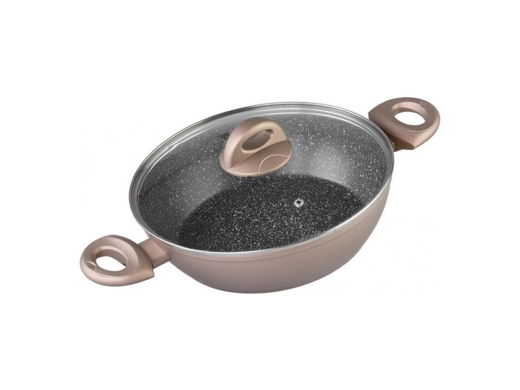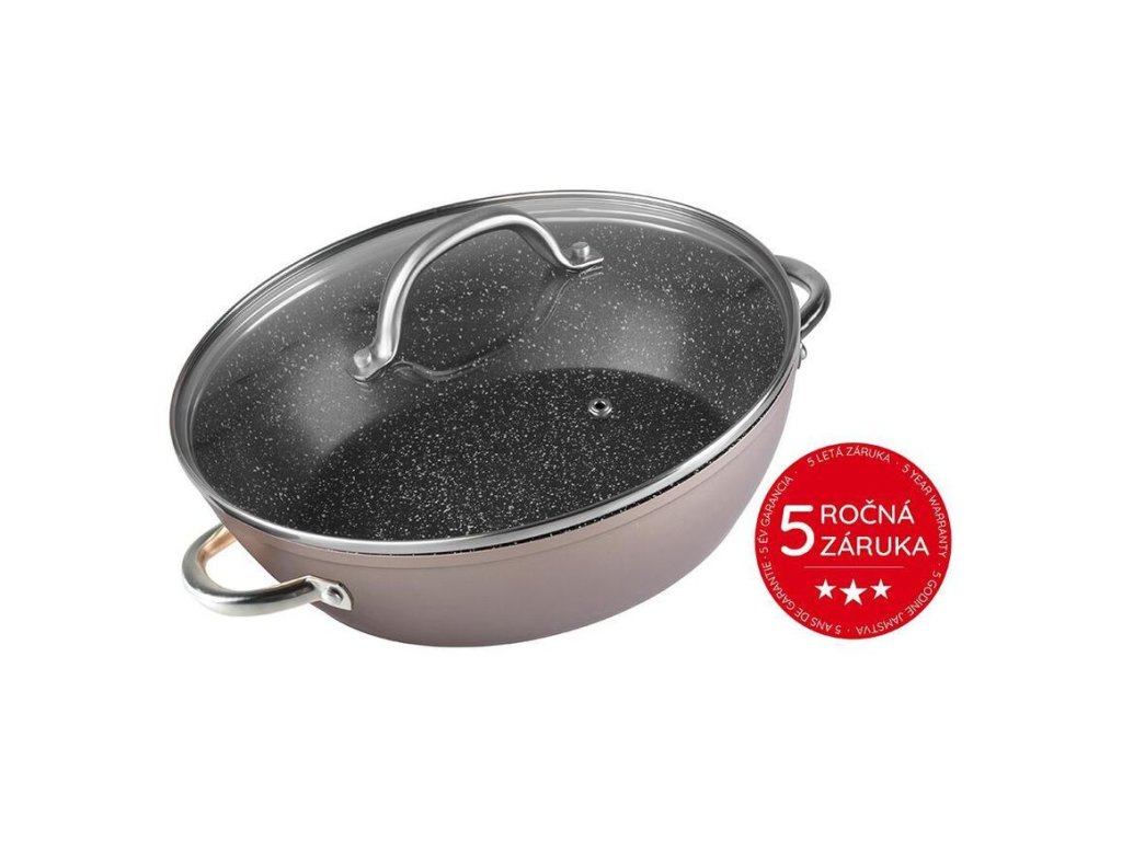 - Plytký hrniec s pokrievkou MagicHome Coffee Brown Line je vyrobený zo zliatiny hliníka s nepriľnavým povrchom a vnútorným 2-vrstvovým mramorovým náterom.
