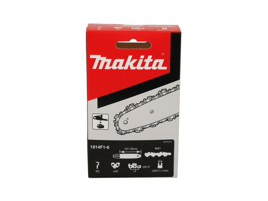 Makita 1914F1-6 je kvalitná pílová reťaz typu M41 pre dĺžku lišty: 25 cm (10"), špeciálne navrhnutá pre aku a elektrické píly Makita. Reťaz s delením 3/8" a úzkou drážkou 1,1 mm (40 vodiacich článkov) zabezpečuje rýchly a efektívny rez. Je ideálna pre modely ako DUC254, DUC353 a iné.