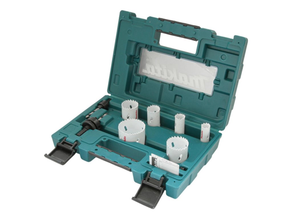Makita 8 dielna Sada vykružovacích koruniek vodárenská adaptér a centrovací vrták, D-63965