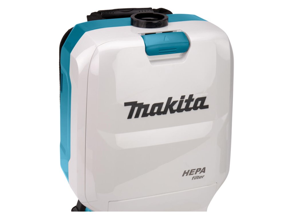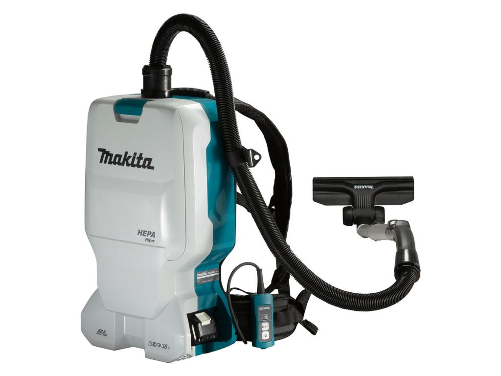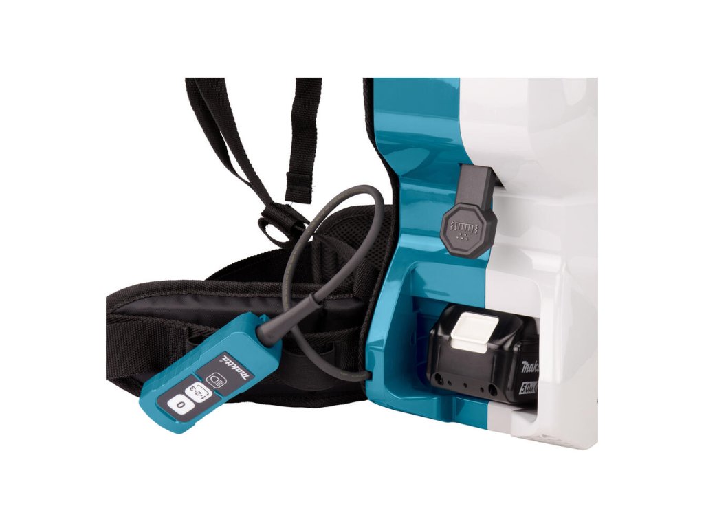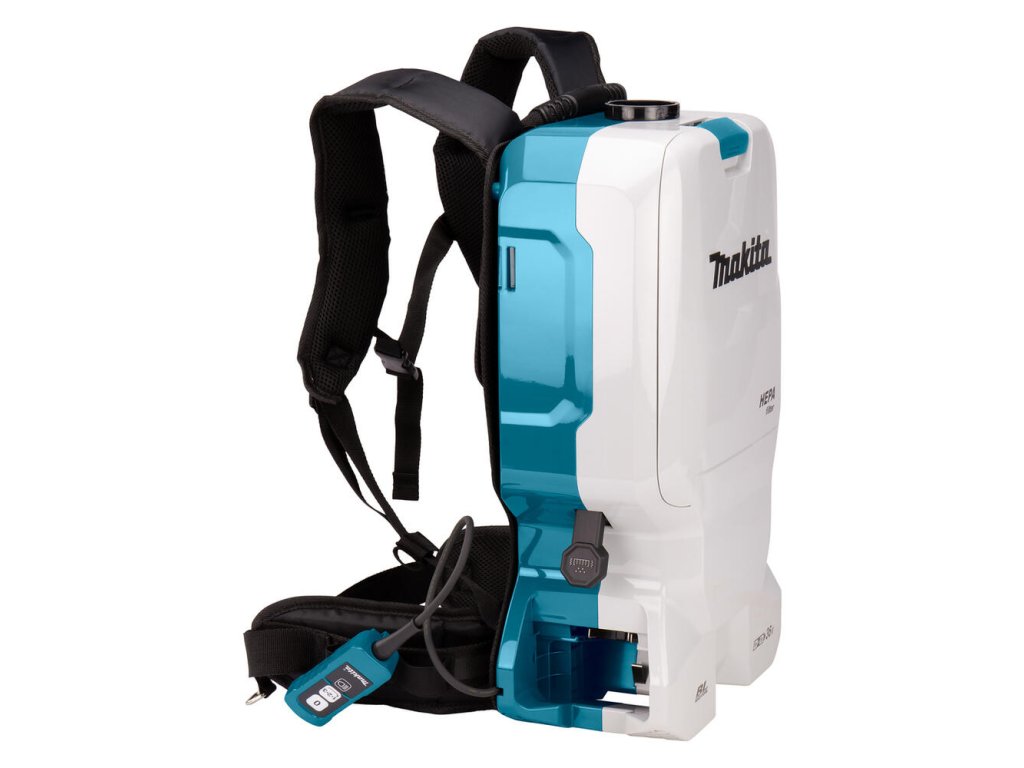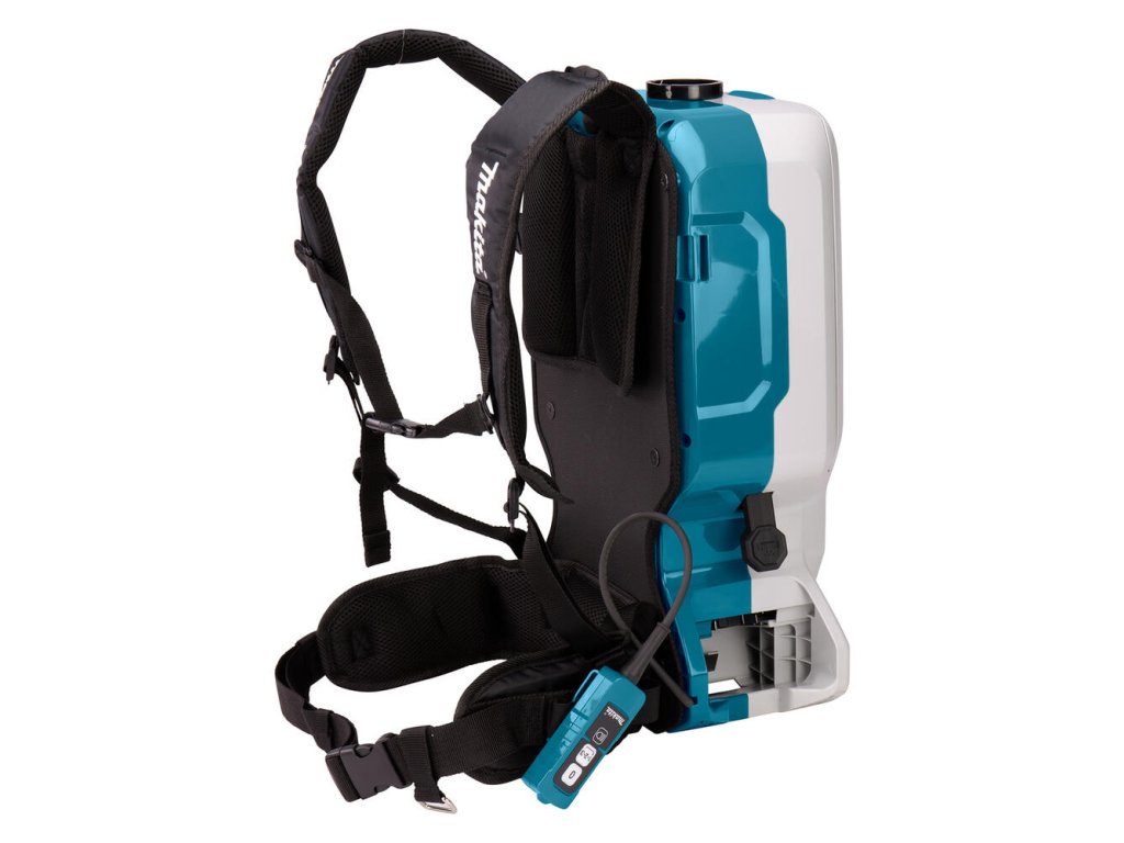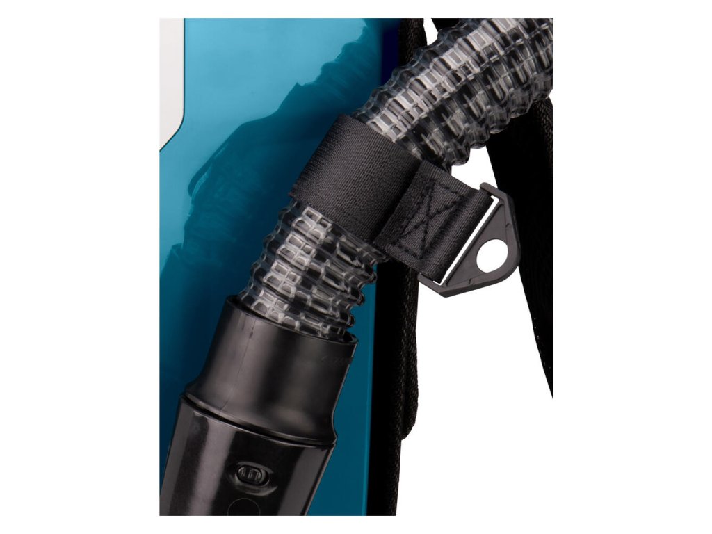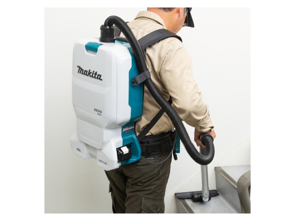- Chrbtový vysávač napájaný 2 lítium-iónovými 18 V batériami určenými na prevádzku na sucho