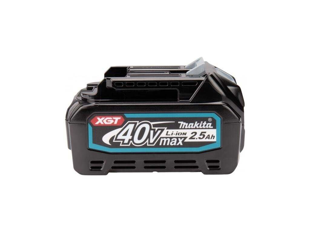 XGT 40 V Max Li-ion batéria s kapacitou 2,5 Ah. Batéria je vybavená indikátorom LED, ktorý zobrazuje stav batérii. Stroje, batérie a nabíjačka platformy XGT sú štandardne vybavené elektronikou, aby mohli navzájom komunikovať. Nabíjačka dáva batérii optimálne nabíjanie v závislosti od stavu batérie. V kombinácii s rýchlou nabíjačkou DC40RA je batéria úplne nabitá za 45 minút. Zariadenie tiež priamo reaguje na stav batérie. V závislosti od stavu batérie je napájanie stroja optimalizované. Batéria je navyše skonštruovaná tak, aby odolala drsným podmienkam prostredia, ako je voda a prach. Majú robustnú konštrukciu, sú chránené proti prachu a majú dizajn odolný voči striekajúcej vode.