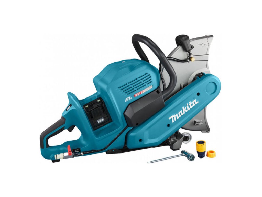- Výkonná akumulátorová rozbrusovacia píla s hĺbkou rezu 127 mm, vybavená prípojkou na vodu.