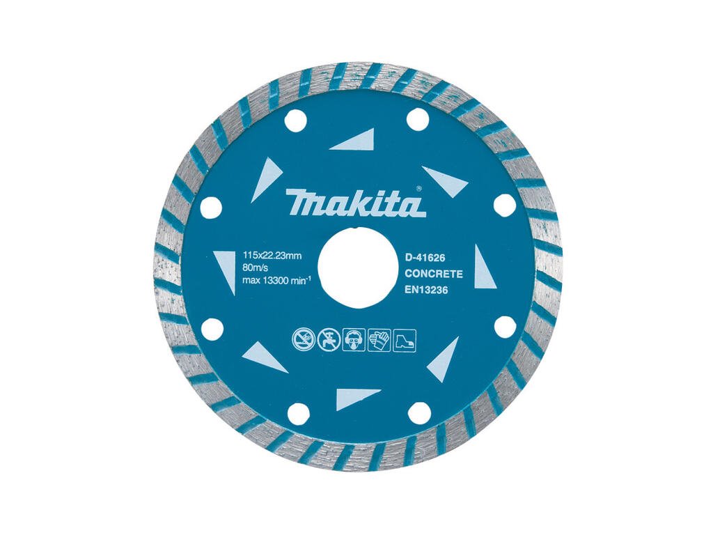 Makita D-41626 je vysokokvalitný nedelený diamantový rezný kotúč (turbo) s priemerom 115 mm, určený pre menšie uhlové brúsky. Poskytuje efektívne a presné suché rezanie betónu, tehál, prírodného a umelého kameňa. Segment s výškou 7 mm zaručuje dlhú trvanlivosť.
