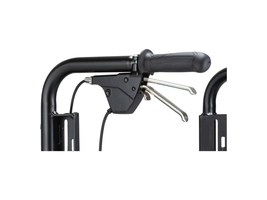 - Kotúčové brzdy na predných kolesách, elektrická brzda a elektromagnetická bezpečnostná brzda, ktorá blokuje stroj na svahoch.