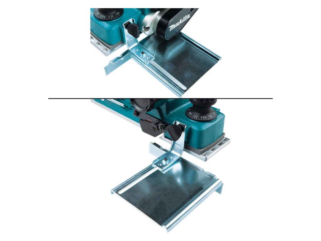 - Základná doska s odkladacou pätkou chráni obrobok a hobľovací nôž proti poškodeniu