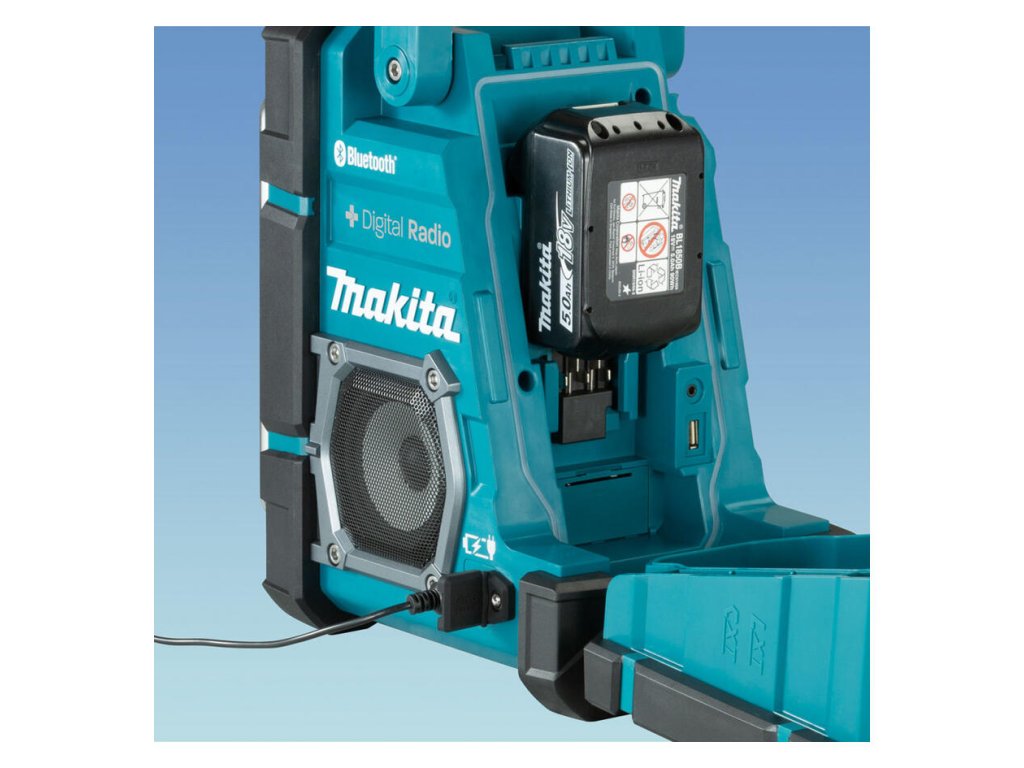 - Stavebné rádio pre použitie s Li -ion akumulátormi Makita (10,8 V - 18 V). Funguje aj na sieťové napájanie vďaka pribalenému sieťovému adaptéru.