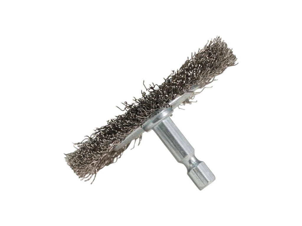 - Drôtená kefa kotúčová 65/0,3 mm - nerezový vlnitý drôt je vynikajúca na čistenie a odstraňovanie farby, hrdze, vodného kameňa a vločiek alebo na odhrotovanie nehrdzavejúcej ocele a ocele.