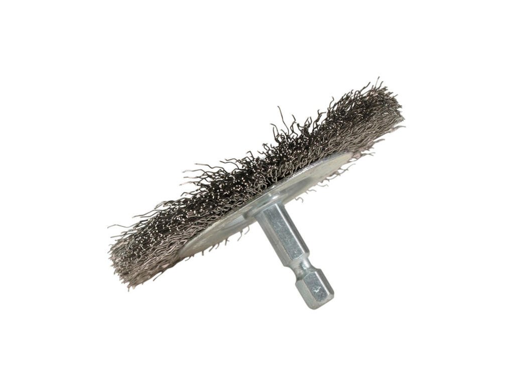 - Drôtená kefa kotúčová 75/0,3 mm - nerezový vlnitý drôt je vynikajúca na čistenie a odstraňovanie farby, hrdze, vodného kameňa a vločiek alebo na odhrotovanie nehrdzavejúcej ocele a ocele.