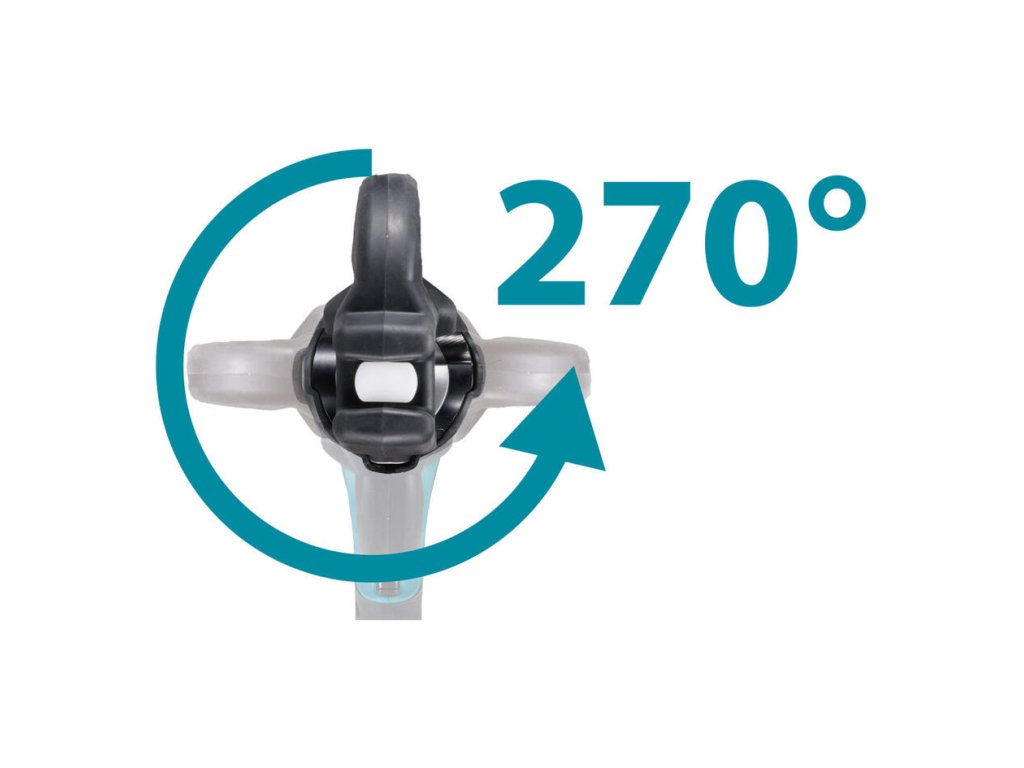 Pracovná hlava otočná o 270°, čo uľahčuje jej použitie v rôznych polohách.