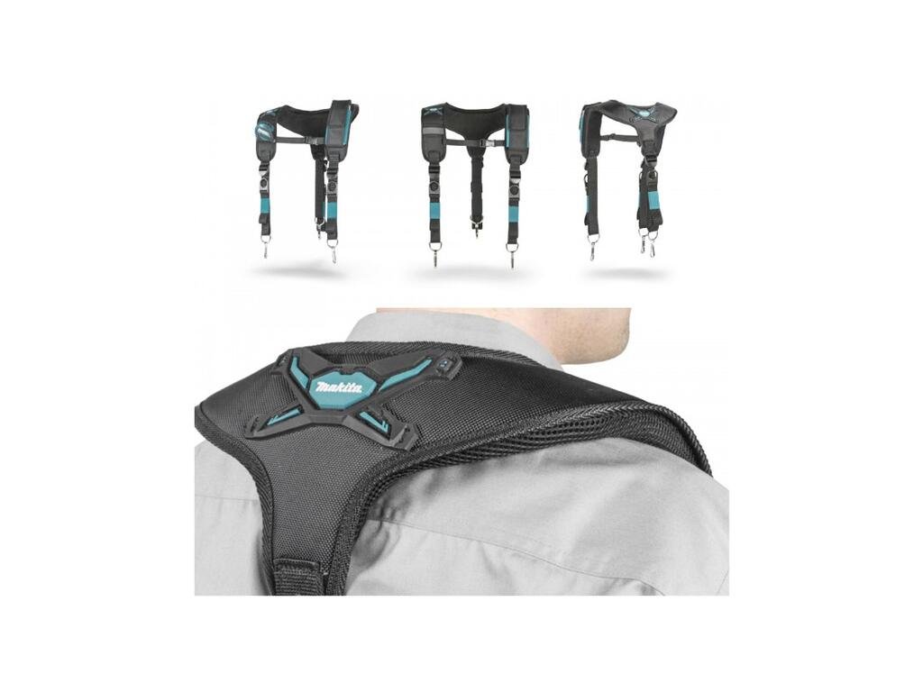 Makita E-05393 sú polstrované traky/šle, ktoré tvoria kľúčovú súčasť Heavy Duty (ťažkého) nosného systému Makita. Tieto traky boli starostlivo navrhnuté na optimálne rozdelenie hmotnosti medzi boky a ramená, čo efektívne pomáha zabraňovať bolestiam v oblasti spodnej časti chrbta a bedier, ktoré vznikajú pri prenášaní ťažkých opaskov s náradím.