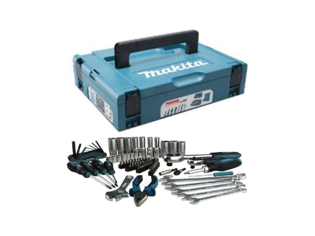 Makita E-11542 je 87-dielna komplexná sada náradia vyrobeného z robustnej chróm-vanádiovej ocele. Je určená do dielne, pre montáže a servisné vozidlá. Sada obsahuje račne 1/2" a kombinovanú račňu 1/4"-3/8", nastaviteľný kľúč, kombinované kliešte a rozsiahle príslušenstvo (nástrčné kľúče, sviečkové kľúče, imbusy a bity SL, PH, PZ, T, TH, H). Náradie je prehľadne uložené v kufríku systému MAKPAC.